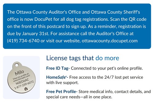 All dog tags will now be processed through DocuPet starting Monday December 1st. Tags will be mailed to owner's regardless of where the tags are purchased. Use the QR code below or visit https://ottawacounty.docupet.com/en_US/